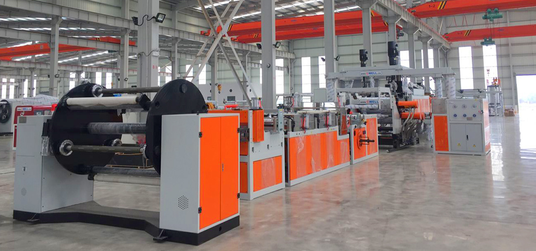 PET單螺桿(結晶干燥)、APETG、PETG、CPET 單層及多層共擠片材生產線是目前國內技術先進、工藝成熟、設備穩定的片材生產線之一,與國內同類設備相比,綜合效能提高30%; 只需要結晶不需要干燥,是金韋爾公司新研制的高品質PET片材機組,其優點:低能耗、工藝簡單、設備使用維護方便等特點。